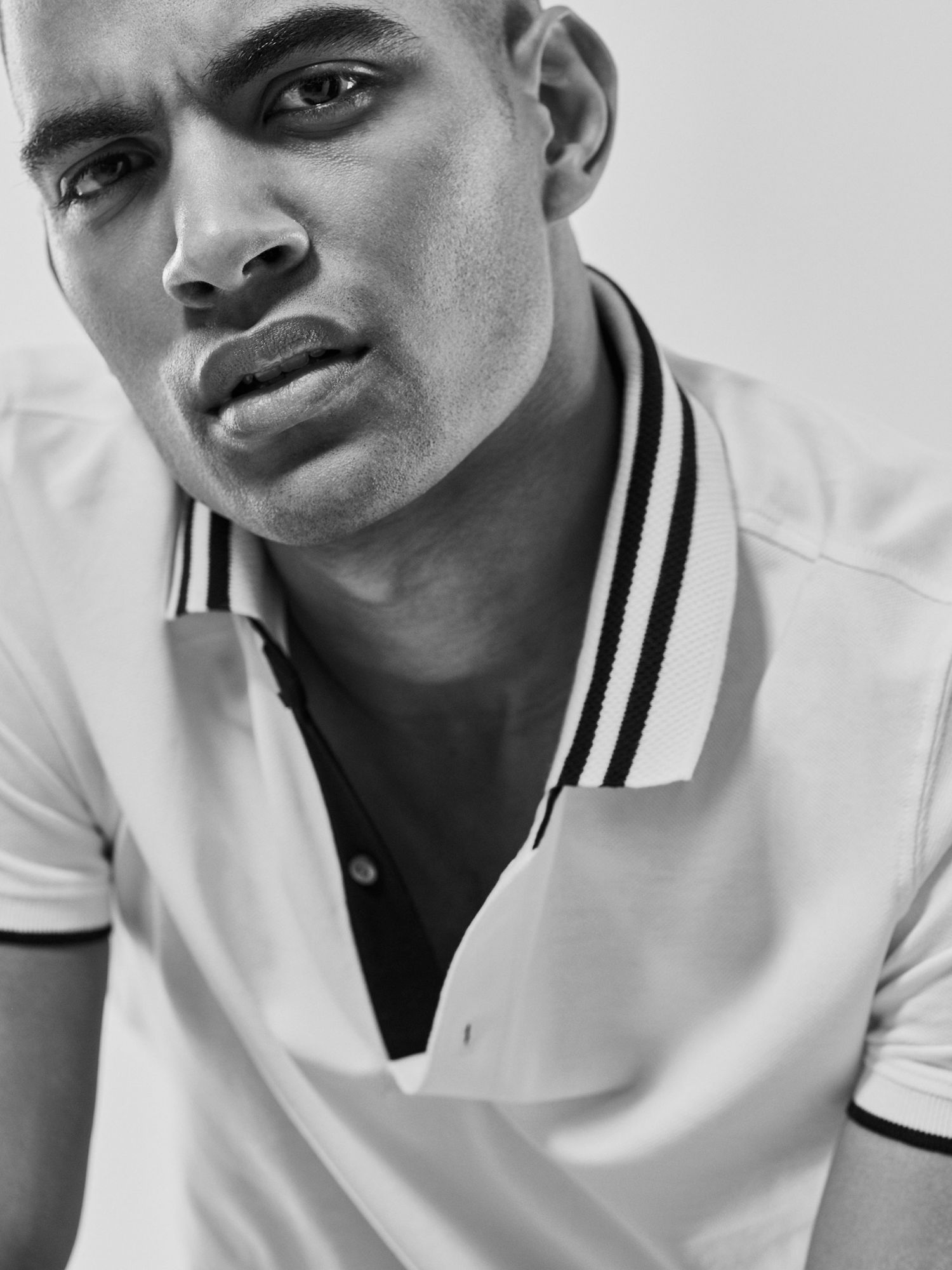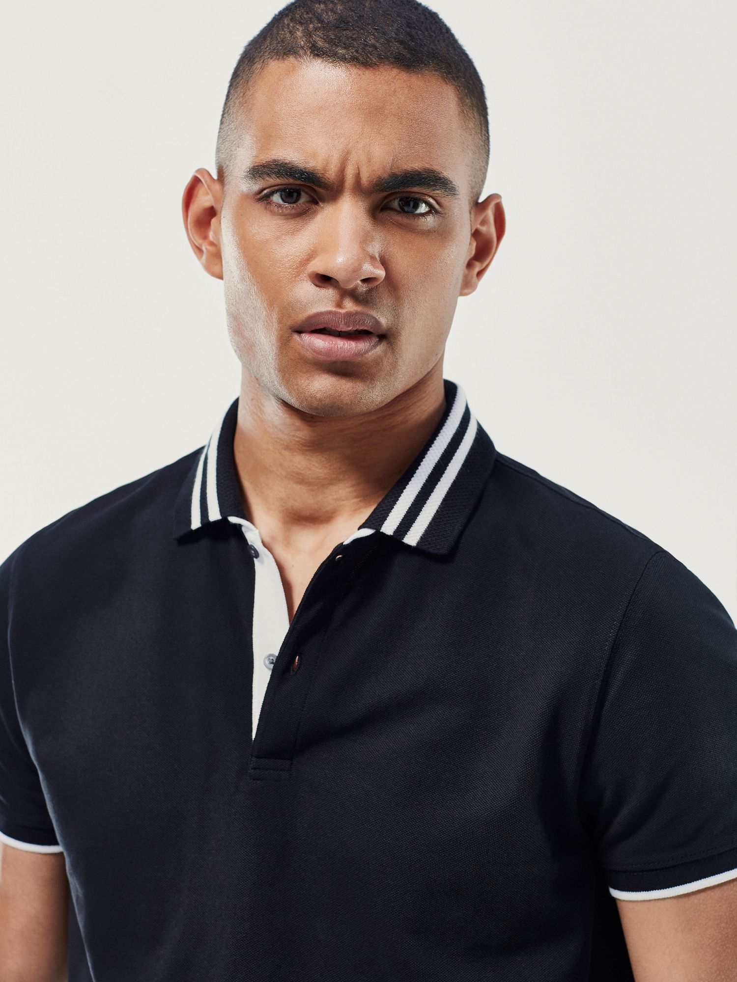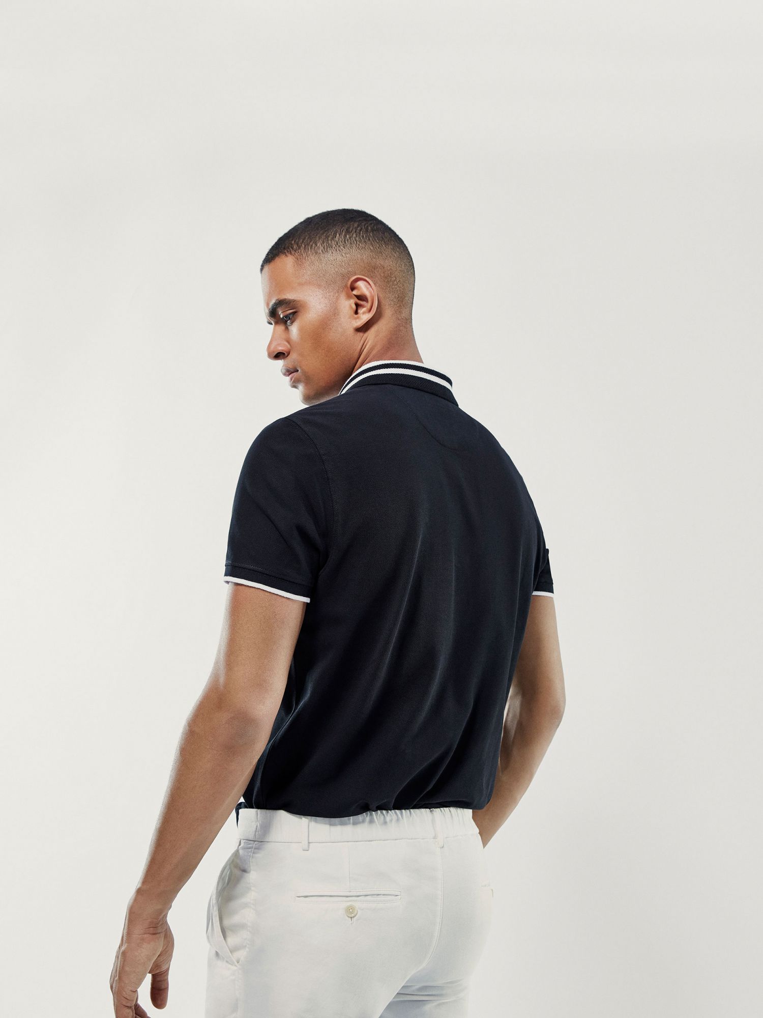 撞色条纹饰全棉POLO衫